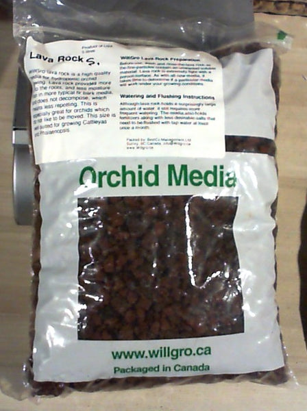 Lava rock is a high quality for hydroponic orchid growing. Lava rock provides more air to the roots, and less moisture than in more typical fir bark media, and does not decompose, which means less repotting. This is especially great for orchids which do not like to be moved. This size is suitable for orchids such as Cattleyas and Phalaenopsis 3 litres.