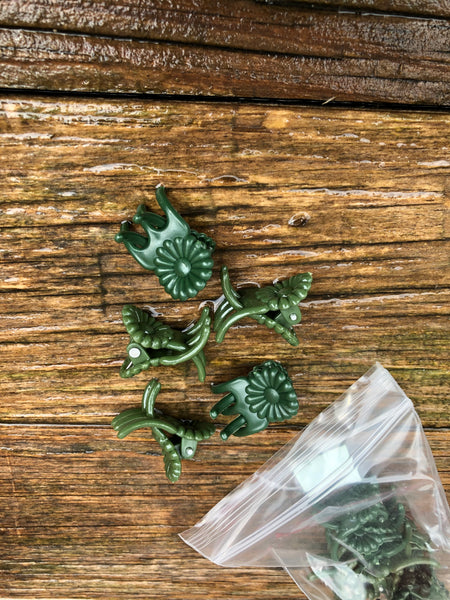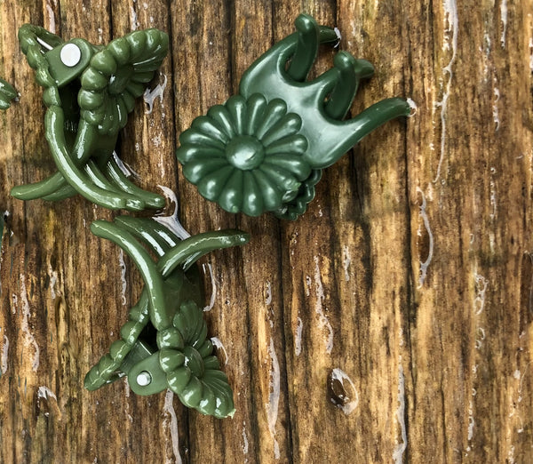 Spring loaded clips used for attaching inflorescence to supporting stakes. These clips are dark green designed to discretely blend in with the foliage and not upstage your flower. Pack of 12.